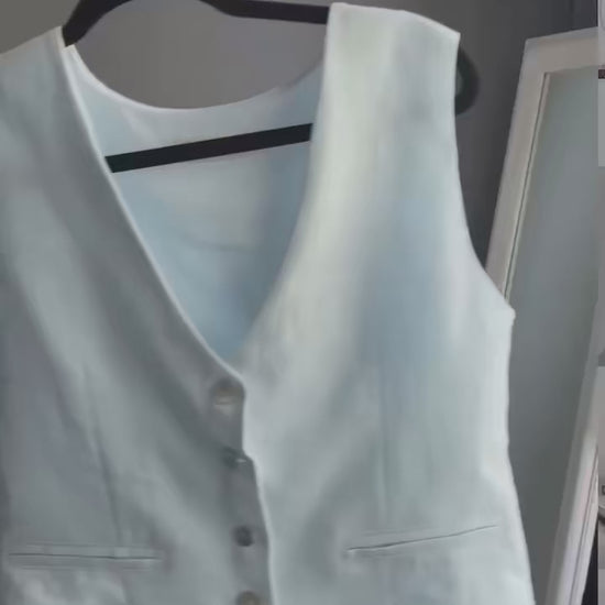 - Design : Ensemble deux-pièces composé d'un gilet de tailleur sans manches à col V et d'un short assorti à la coupe droite.