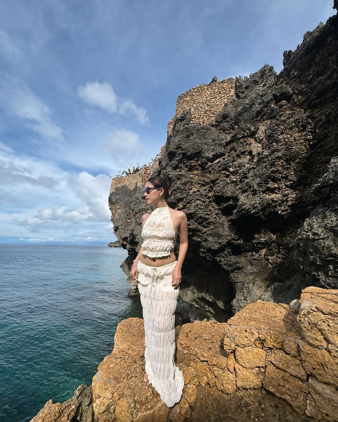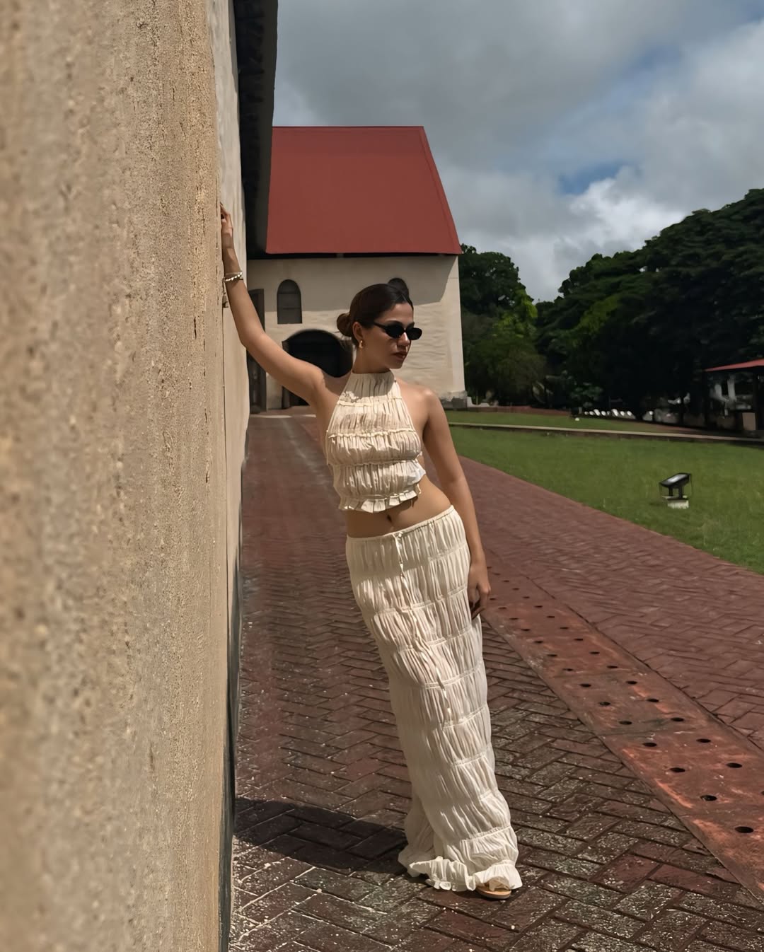L'incarnation du style bohème-chic. Cet ensemble deux pièces est une véritable invitation au voyage, conçu pour les journées ensoleillées et les escapades lointaines. Sa texture plissée unique et sa coupe aérienne créent une allure à la fois décontractée et incroyablement sophistiquée. C'est la tenue qui respire l'été et l'aventure.