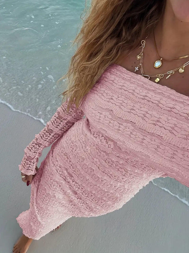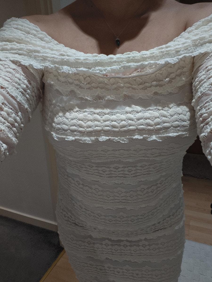 - Design : Épaules dénudées (Bardot), manches longues, transparent